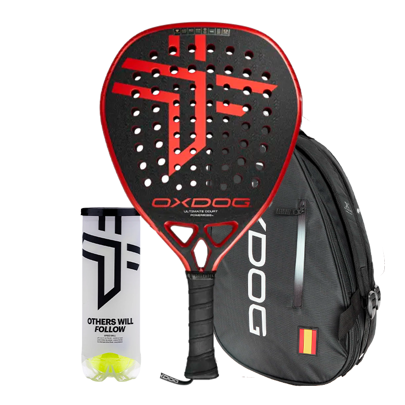 Pala Oxdog Ultimate Court + Paletero Oxdog FEP ultra tour padel bag + Bote de pelotas Oxdog BOOST+