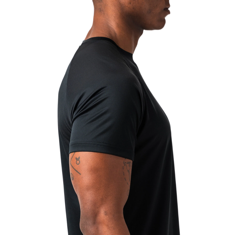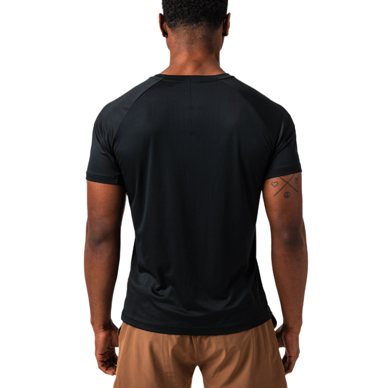 Das T-Shirt Drop Shot Buma rein Schwarz, Hergestellt aus fortschrittlichem Jacquard-Polyester, einem leichten und widerstandsfähigen Stoff, der für die Anforderungen von Padel entwickelt wurde.