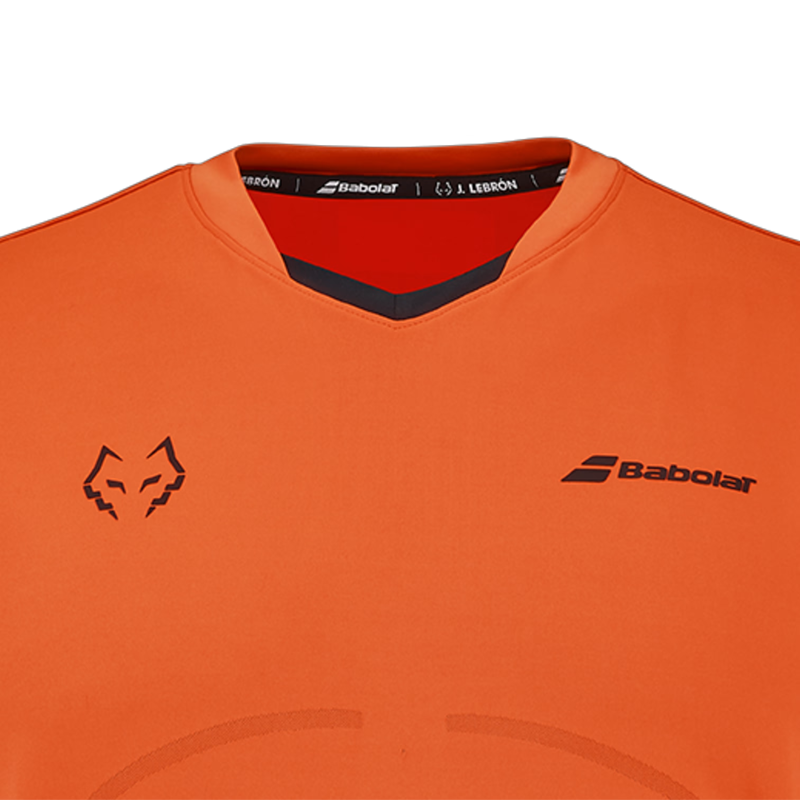 Das Replica-T-Shirt mit Rundhalsausschnitt Babolat Juan Lebron Orange vereint professionelles Design und technische Leistung, hergestellt aus einer Zusammensetzung aus 93 % recyceltem Polyester und 7 % Elastan, die maximalen Komfort, Bewegungsfreiheit und Nachhaltigkeit garantiert, speziell für Spieler entwickelt, die den Stil ihres Idols zur Schau stellen möchten, ohne Kompromisse bei der Leistung auf dem Platz einzugehen.