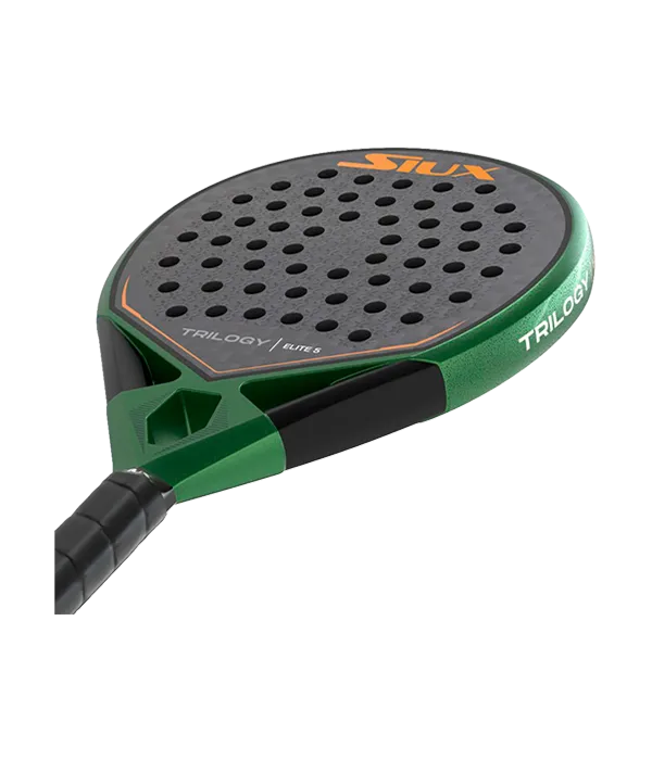 Der Siux Trilogy Elite 5 ist ein Padelschläger Hohe Leistung für fortgeschrittene Spieler, die ein perfektes Gleichgewicht zwischen Kontrolle und Manövrierfähigkeit suchen. Seine runde Form und der breite Sweetspot ermöglichen außergewöhnliche Präzision bei jedem Schlag, während sein EVA-Gummikern mit mittlerer Berührung einen weichen und ausgewogenen Schlag bietet. Hergestellt aus 12K-Carbon an den Flächen, garantiert es Leichtigkeit, Widerstandsfähigkeit und Haltbarkeit und bietet optimale Leistung in jedem Spiel. Die erneuerte Form mit Schaumstoff und Relief verbessert die Vibrationsdämpfung und sorgt so für mehr Komfort bei längeren Begegnungen. Darüber hinaus ermöglicht die raue 3D-Oberfläche die einfache Erzeugung von Effekten, was dem Spiel Vielseitigkeit verleiht. Als Neuheit erweitert das neue Bohrsystem den Sweet Spot weiter und optimiert die Kontrolle und Präzision bei jedem Schlag.