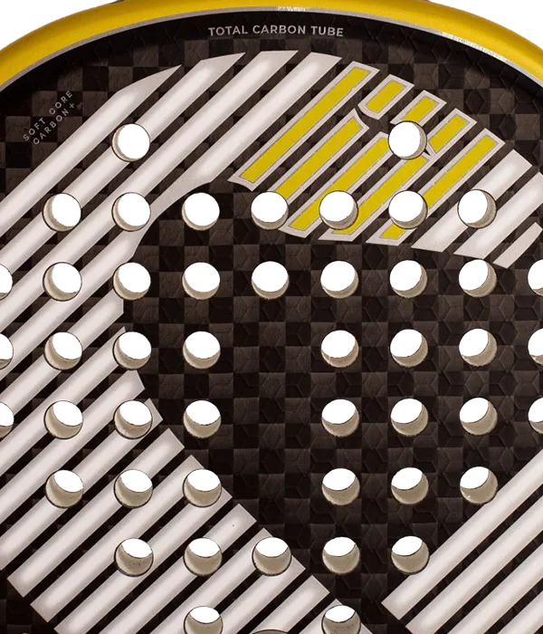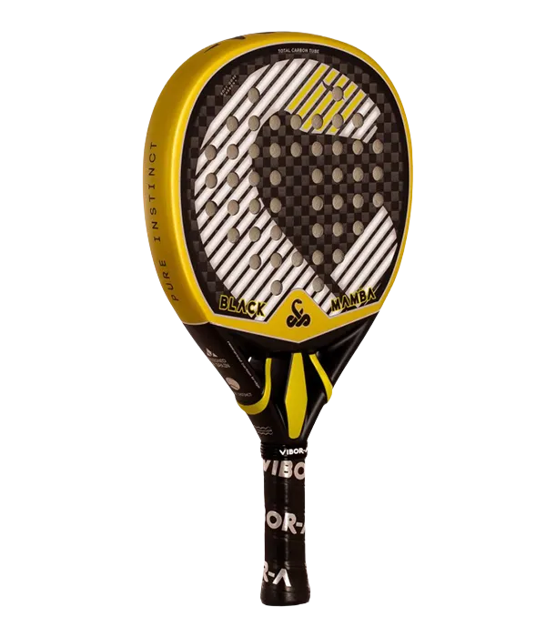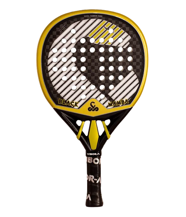 Der Padelschläger Vibor-A Black Mamba Radical 12K 3.0 2026 kombiniert 12K Carbon und einen mittelharten EVA-Kern, um eine außergewöhnliche Balance zwischen Kraft und Kontrolle zu bieten. Sein hybrides Tropfenformat und die mittlere Balance sorgen für Vielseitigkeit und einen großen Sweet Spot und ermöglichen präzise und effektive Treffer sowohl im Angriff als auch in der Verteidigung. Entwickelt für fortgeschrittene Spieler, die ihre Leistung mit einem maximieren möchten Padelschläger Es ist vielseitig einsetzbar und zeichnet sich außerdem durch sein elegantes Design mit gelben Details aus, die dem Platz Persönlichkeit verleihen.