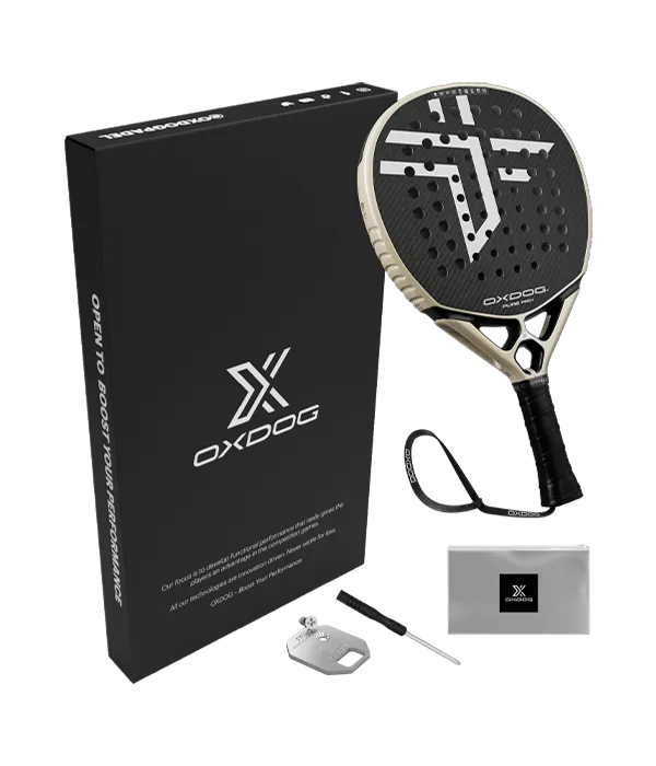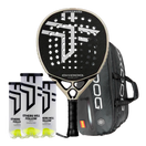 Packung bestehend aus einem Padelschläger Oxdog Pure Pro+, Padel-Taschen Oxdog FEP Hyper Pro Therm und drei Dosen Bälle Oxdog Boost+.