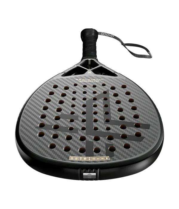 Padelschläger Oxdog Hyper Pro 2.0, ein Padelschläger in Tropfenform, mit hoher Balance und mittlerer Härte , um Ihr Potenzial sowohl am Netz als auch im Hinterfeld voll auszuschöpfen. Das Design besticht durch seine Eleganz, dank der vorherrschenden Farbe Schwarz und der subtilen Details des Gold.