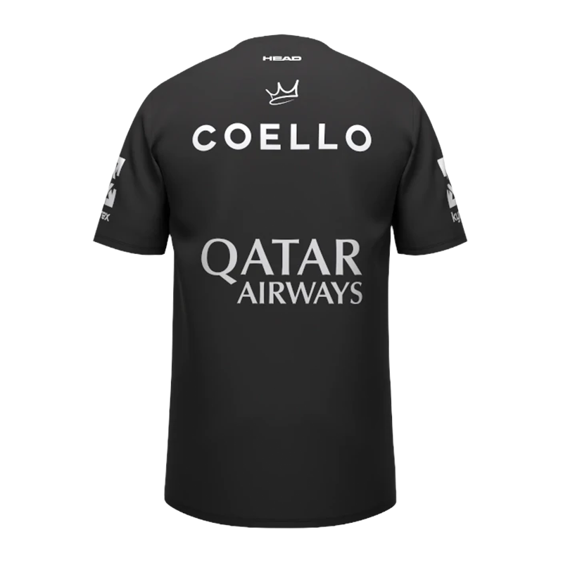 Das T-Shirt Head Arturo Coello sponsert in Schwarz, Entwickelt für Padel-Spieler, die maximale Leistung und professionellen Stil suchen.