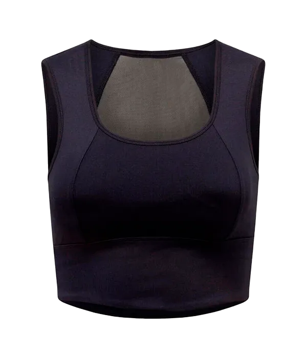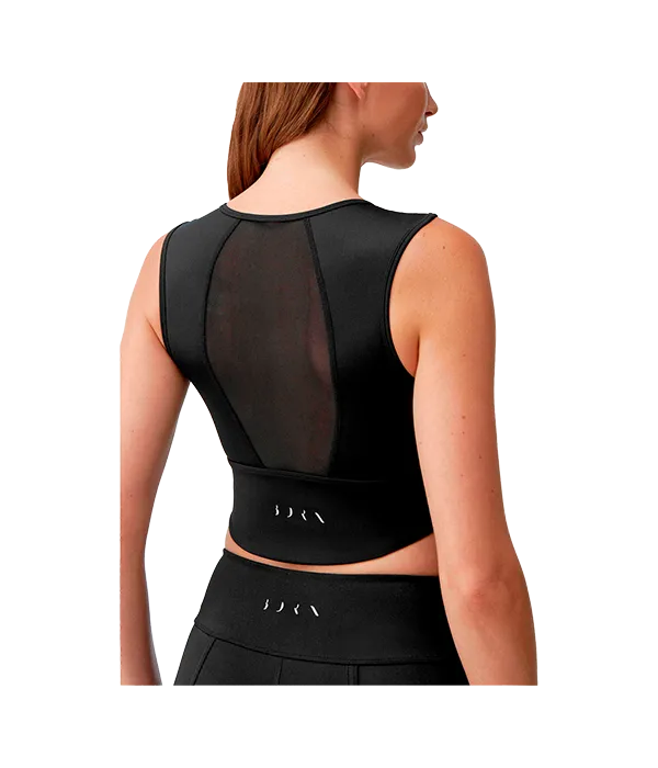 Top Born Living Yoga Alisha Schwarz mit schlichtem und sehr elegantem Design, Rücken mit Mesh-Einsatz.