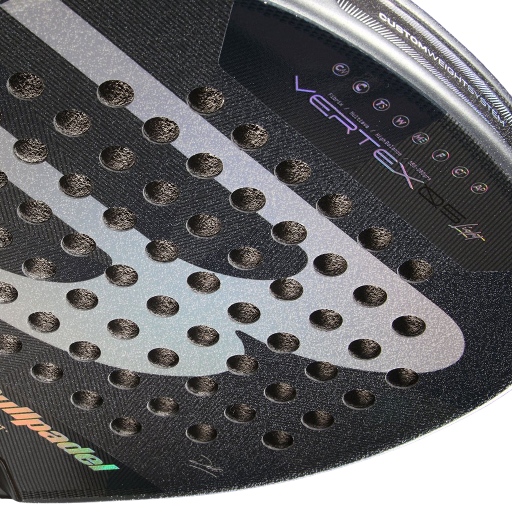 The Bullpadel Vertex 05 Light Premier 2026 is a racket designed for advanced players who seek to dominate the court with power, Control and lightness. Its innovative double diagonal bridge heart with triangular geometry distributes the forces of Shape optimal, guaranteeing precise hits and exceptional maneuverability. with Shape of Diamond, light weight of 350-360 grams and Material Fibrix Comp, this racket offers a fast and durable response. The core MultiEva combines rubber of different densities to balance Control and power, while its 38 mm profile with a medium-soft feel provides comfort with every shot.