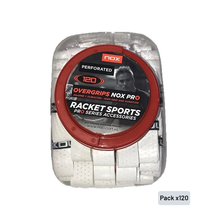 Overgrip Nox Professional quality white Pro (x120). The best grip and elasticity to ensure maximum comfort and reduce injuries and discomfort in the elbow due to vibrations.