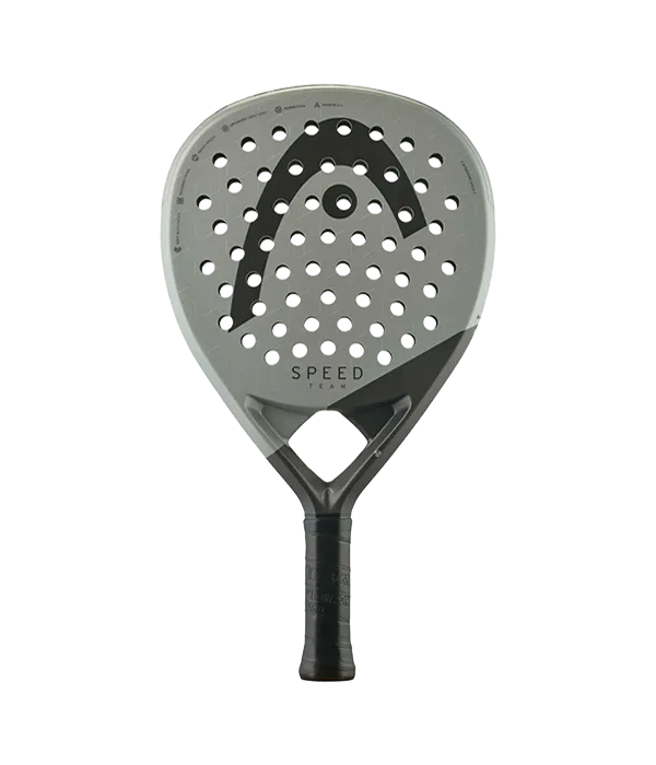 Racket Head Speed Team 2025, the racket most comfortable of the SPEED range, offering an ideal balance between controlled power and soft touch. Its teardrop-shaped design is designed for intermediate and advanced players looking to improve their game. Now you have the technology Auxetic 2.0, which guarantees an unmatched hitting experience. Its fiberglass surface provides a softer feel and excellent ball output, while the improved soft plug at the base of the grip increases comfort and softness in the grip. one racket Designed for those who want to combine control and power with maximum comfort.