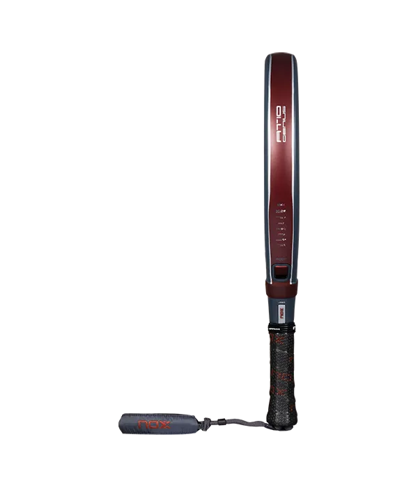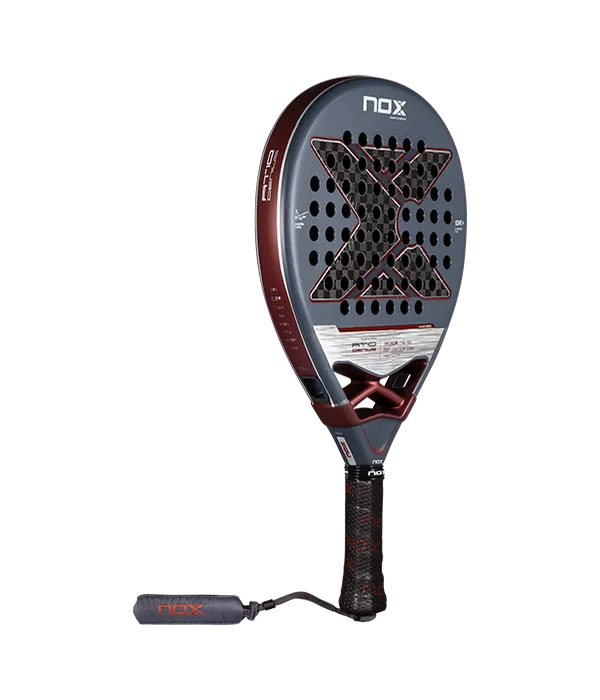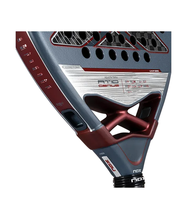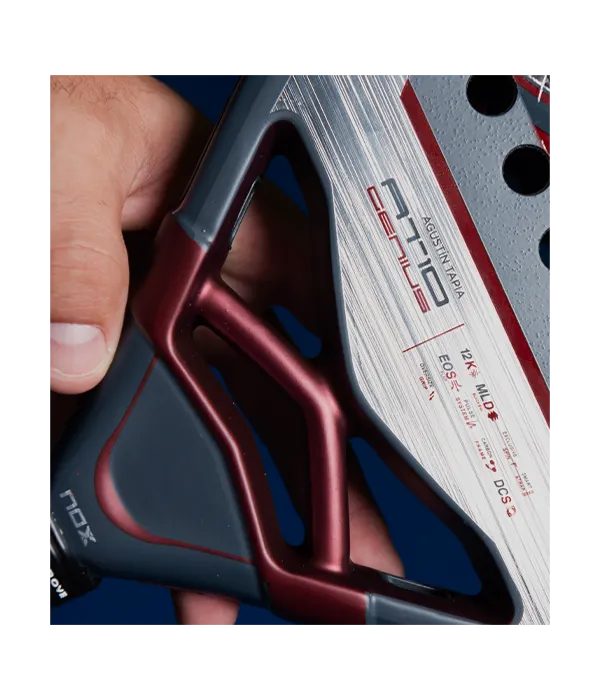 Racket NOX AT10 Genius 12K 2025 Agustín Tapia, a racket for players looking for a more solid and rigid feel. Teardrop format, this new format features a carbon surface 12K and MLD Black Eva multi-layer core, which provides a solid hitting sensation and medium-high hardness. Their faces have included a rough 3D hexagonal in the center and sand texture in the rest.
