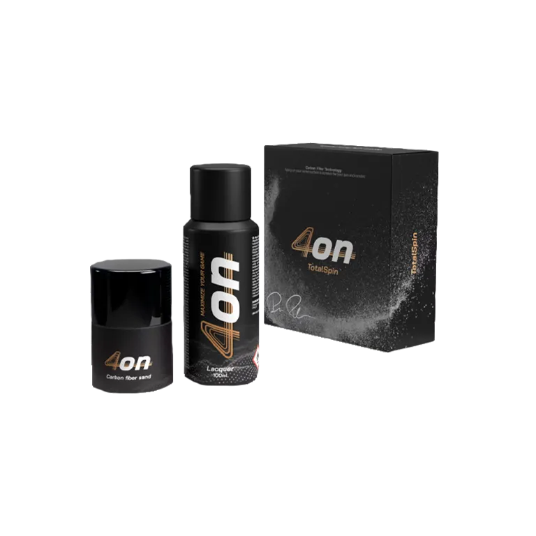 TotalSpin 4ON It is composed of a 100 ml lacquer and a carbon fiber sand. With this pack you can get a rough sandpaper-style surface to your racket. Thanks to a rough surface, hits with spin are achieved.