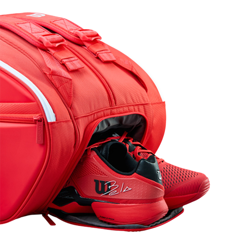 El Paletero Wilson Super Tour Red 2026 es el compañero indispensable para el jugador de pádel exigente. Con capacidad para seis palas y múltiples compartimentos, organiza tu equipo completo—desde calzado hasta accesorios—sin compromisos. La tecnología Thermoguard protege tus palas de variaciones de temperatura, mientras que su construcción premium y diseño contemporáneo reflejan tu compromiso con la excelencia. Transporte seguro, acceso intuitivo y estética sofisticada en una sola solución.