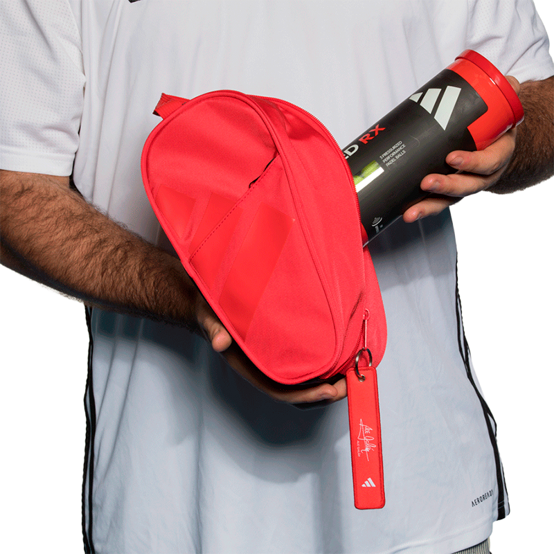 toiletry bag Adidas Red/Black Ale Galán that combines space and practicality for training and competitions. Its large main compartment houses accessories padel and personal effects with order, while two side zipper pockets ensure storage of small items. Comfortable carrying handle to take it to any part of the court.