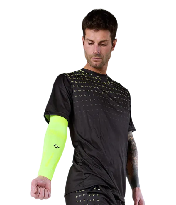 Compression Sleeves Floky No Strain Yellow Fluor Biomechanically designed to absorb and distribute vibrations, these sleeves effectively protect the elbow and forearm, stabilizing tendons and muscles. Its advanced anatomical compression helps prevent inflammation and injuries in high-impact sports, improving resistance and offering support during intense physical effort.