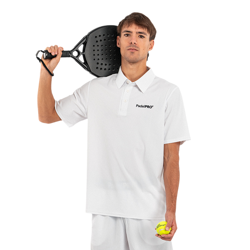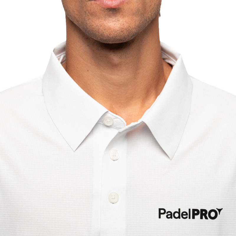 Pro Elite PadelPRO polo made of high quality jacquard fabric that combines nylon and elastane. This composition guarantees exceptional durability, flexibility in every movement and optimal recovery after intense play. Nylon provides superior tear and abrasion resistance, while elastane ensures unrestricted comfort. Designed for players who demand performance and elegance on the court.