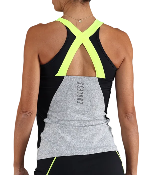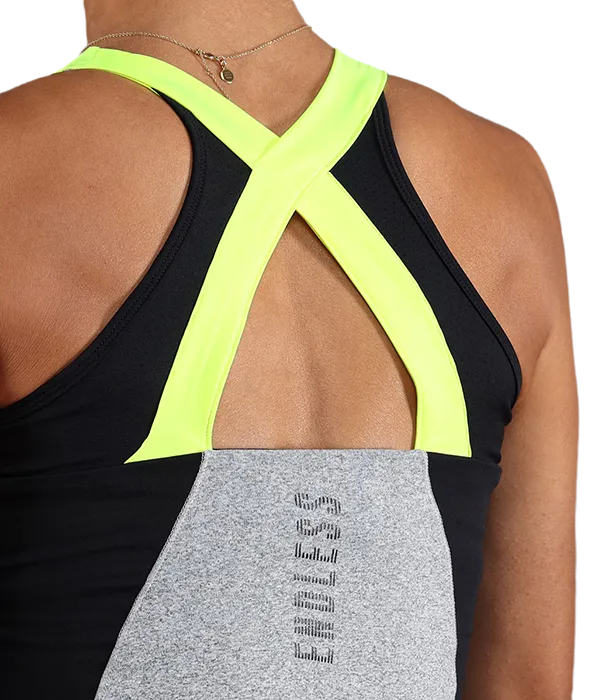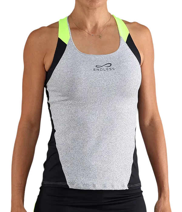 The T-shirt Endless Grace Black/Forest 2025 combines technology and design to offer optimal performance on the court. Its extra-elastic Lycra®-certified fabric adjusts to your every movement, while multifilament technology absorbs and evacuates sweat to keep you dry and comfortable. In addition, it provides UPF 50+ sun protection in covered areas. Its contrasting crossed straps stand out, side pieces that stylize the figure and ergonomic flat seams that eliminate chafing, guaranteeing comfort and freedom of movement during the game.