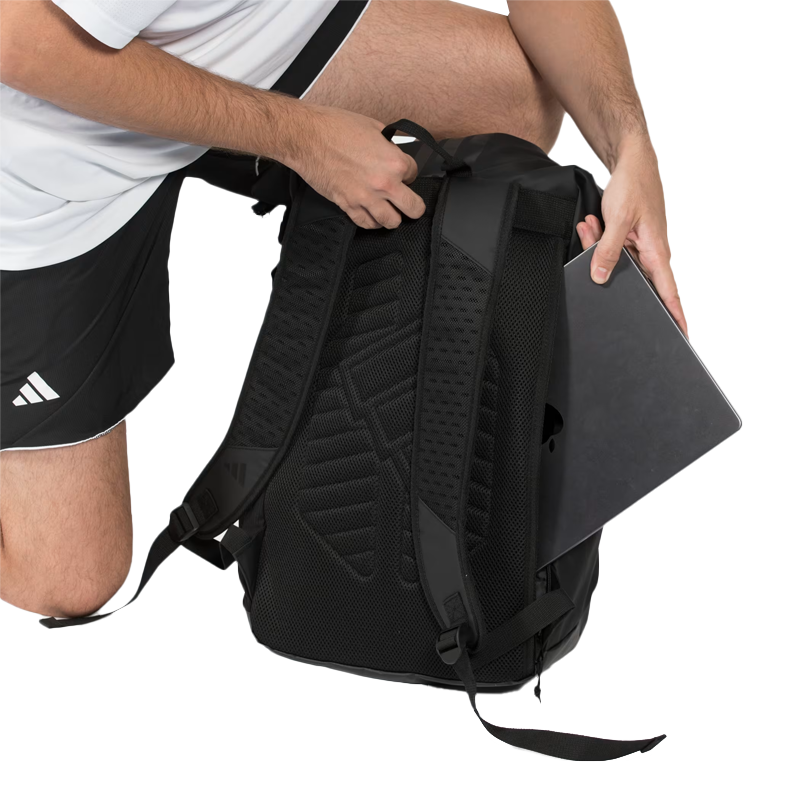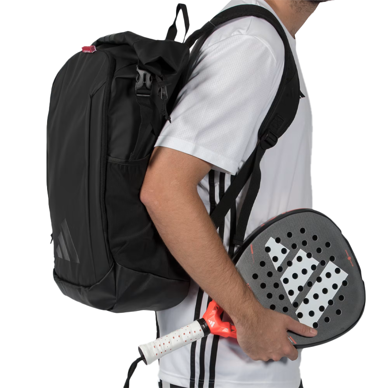 The backpack Adidas Multigame Black 2026 is your perfect companion for any time of the day. Designed with an innovative Rolltop system that allows you to adjust the volume according to your needs, it combines functionality and style for demanding players. Its smart structure includes a spacious main compartment, a padded laptop pocket, a dedicated racket divider, and two elastic mesh sides for bottles. The thermally insulated front compartment keeps your drinks at the ideal temperature, while the reinforced bottom ensures extreme durability. Adjustable padded straps with ergonomic back panel ensure Mmaximum comfort during transport. A versatile backpack that accompanies you both on the track and in your daily routine.