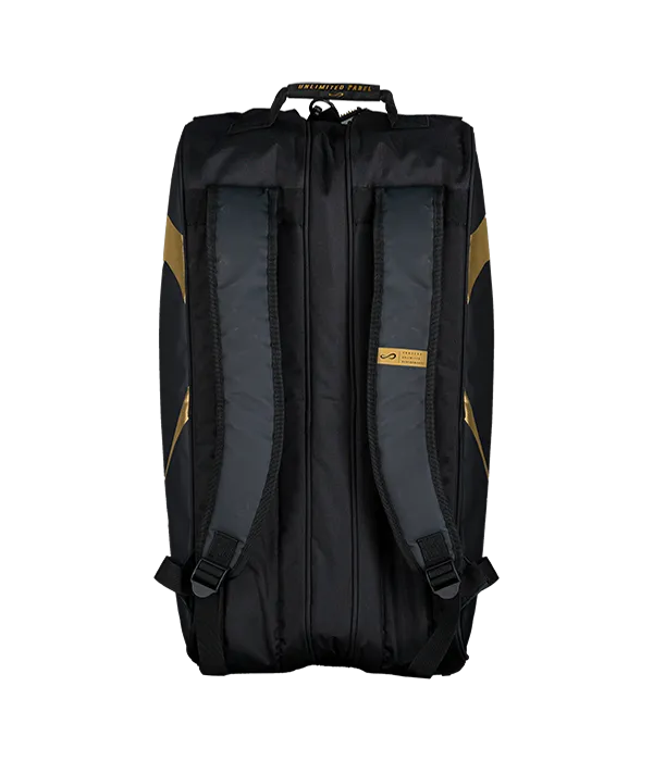 Padel bag Lightweight with enough capacity and space to carry everything you need to be ready to play. It has two large compartments, inside it includes a bag to store shoes and special compartments for cell phone, glasses, keys, etc. Manufactured with high resistance material to ensure maximum durability. Water resistant and extremely easy to clean. High-quality central thermal compartment (cooler) with capacity for 2 blades