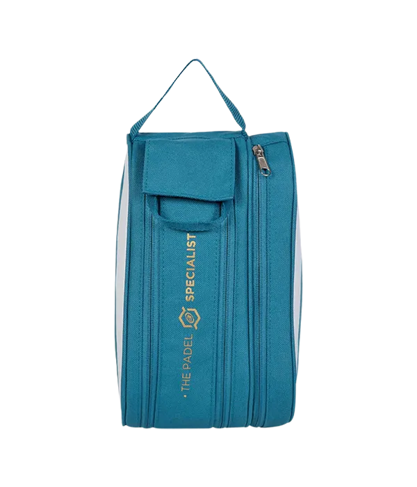 The official toiletry bag Bullpadel D.Case Blue Verdoso combines practicality and unique style. Its medium size makes it easy to carry anywhere, while the double zipper and side pocket ensure organized access to all your items. The reinforced handle offers durability and comfort, ideal to accompany you on and off the court. Personalized with the logo and exclusive signature of Bea González, this toiletry bag highlights your personality without sacrificing functionality. An essential accessory for those who value every detail.