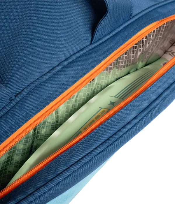 The paletero StarVie Tactical Pro Master Blue 2026 combines functionality and sporty design for demanding players. It has two Termotech thermal compartments that protect the blades from padel from extreme temperatures, a ventilated compartment for shoes and a side pocket for accessories. Its double carrying system, with padded handles and backpack-type straps, guarantees comfort and versatility during transport.