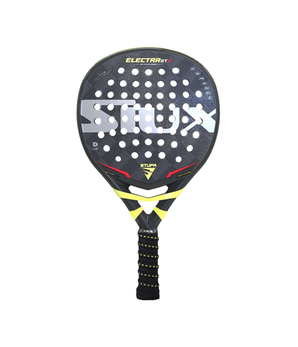 The racket Siux Electra ST2 Stupa Pro It is a high-performance model with a diamond shape. Designed by Franco Stupaczuk, it has Carbon 15K on its face and a Hard EVA Rubber in its core, offering a medium-hard touch.