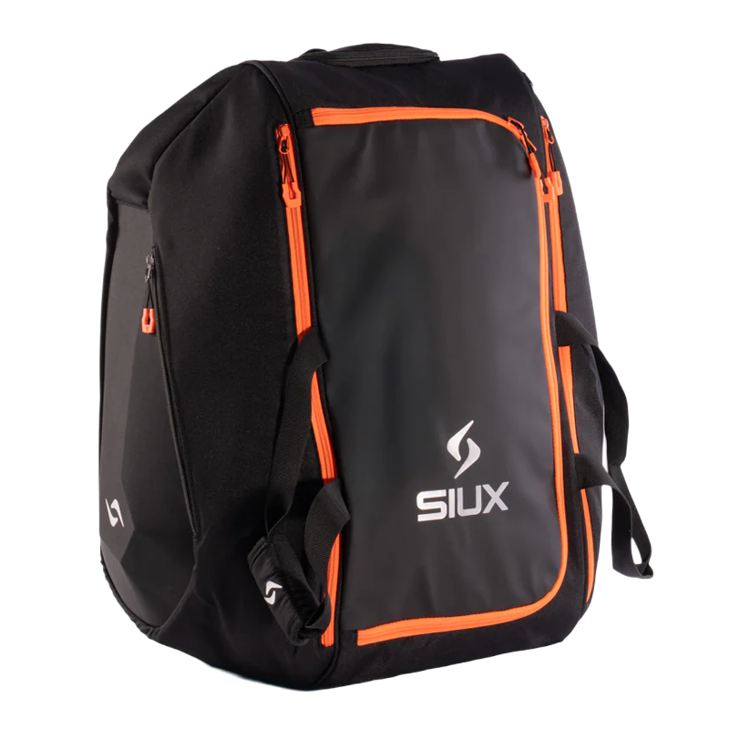 The Padel bag Siux Tour Black represents the functionality Professional of the Range Elite. With 60 liter capacity for 4 Padel Rackets, this Padel bag It integrates high-performance thermal insulation that protects your equipment in any weather condition. Its optimized dimensions of 61 × 49 × 32 cm incorporate a dedicated compartment for Padel Shoes, front pocket and two quick access side pockets. Constructed of neoprene-reinforced polyester, the padded back ensures superior comfort during transport, completed with the distinctive key ring Siux.
