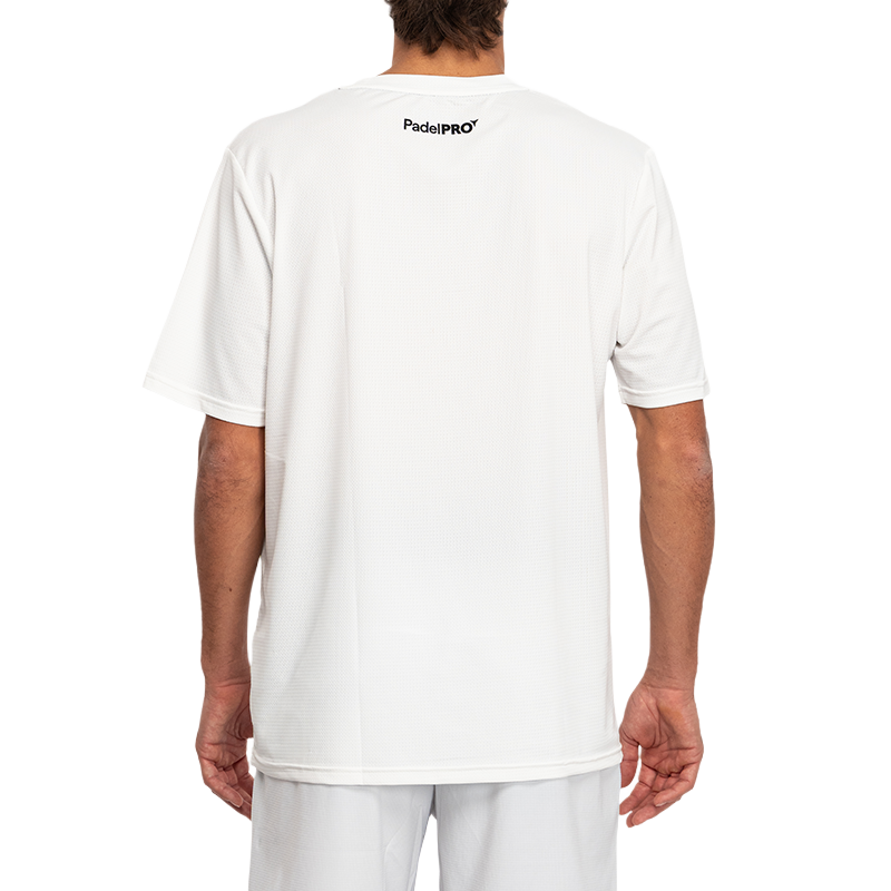 T-shirt Pro Basic in color White made of jacquard fabric. This essential performance t-shirt combines 81% nylon with 19% elastane for exceptional durability and elastic recovery. Refined construction offers a sophisticated fit that adapts to your game, resisting match wear and tear MtoS intense while maintaining his form season after season. A versatile fundamental piece for demanding players who demand quality without compromise.