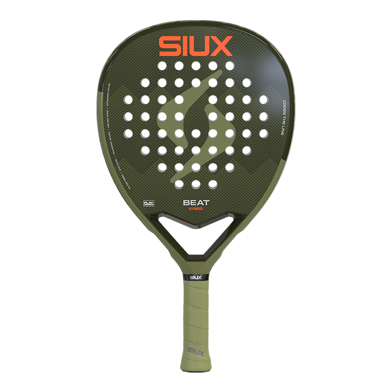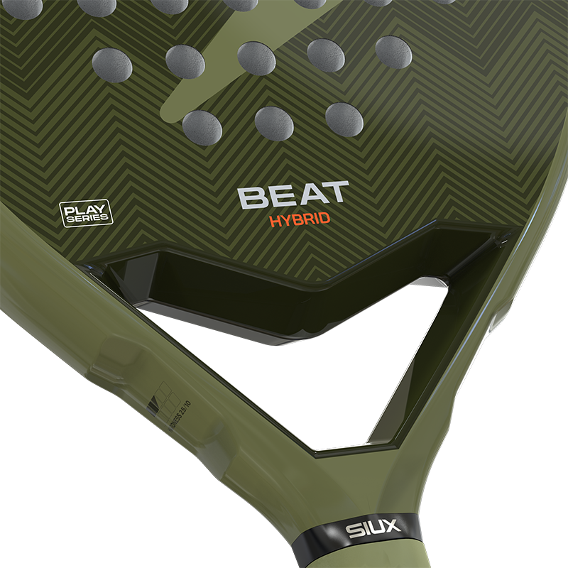 The Siux Beat Hybrid 3 2026 is a racket Entry-level hybrid with a teardrop shape that balances power and control. The fiberglass faces offer flexibility and forgiveness on off-center hits, while the EVA core provides a soft feel and predictable response. With medium balance and hardness of 2.5/10, it facilitates adaptation to different game situations. The gloss finish combines premium aesthetics with durability. Weight between 355 and 375 grams.