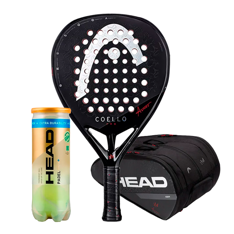 Pack racket HEAD Coello Pro 2025 + Padel bag PadelPROShop Black + Padel Pack Balls Oxdog BOOST+