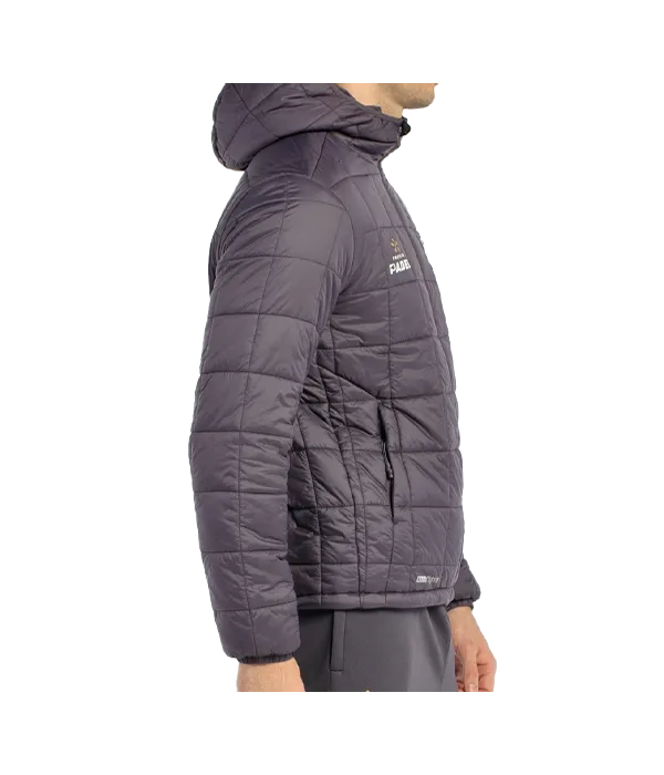 Anorak Bullpadel Bases made of Nano Flight nylon fabric, ultralight and with a DWR finish that repels water, offering protection against light rain. It features Dupont Sorona filling, which combines lightness, breathability, water resistance and excellent thermal insulation, as well as being easily compressible for practical storage.