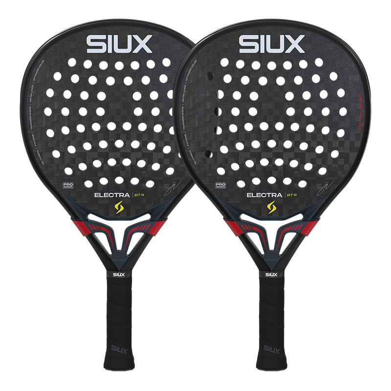 Pack of two rackets Siux Electra ST5 Pro Shadow Red 2026 Franco Stupackzuk, designed for professional players looking for a hybrid game of power, with a teardrop shape that perfectly combines control and aggressiveness in each hit, ideal for high-level competitors who dominate both attack and defense.