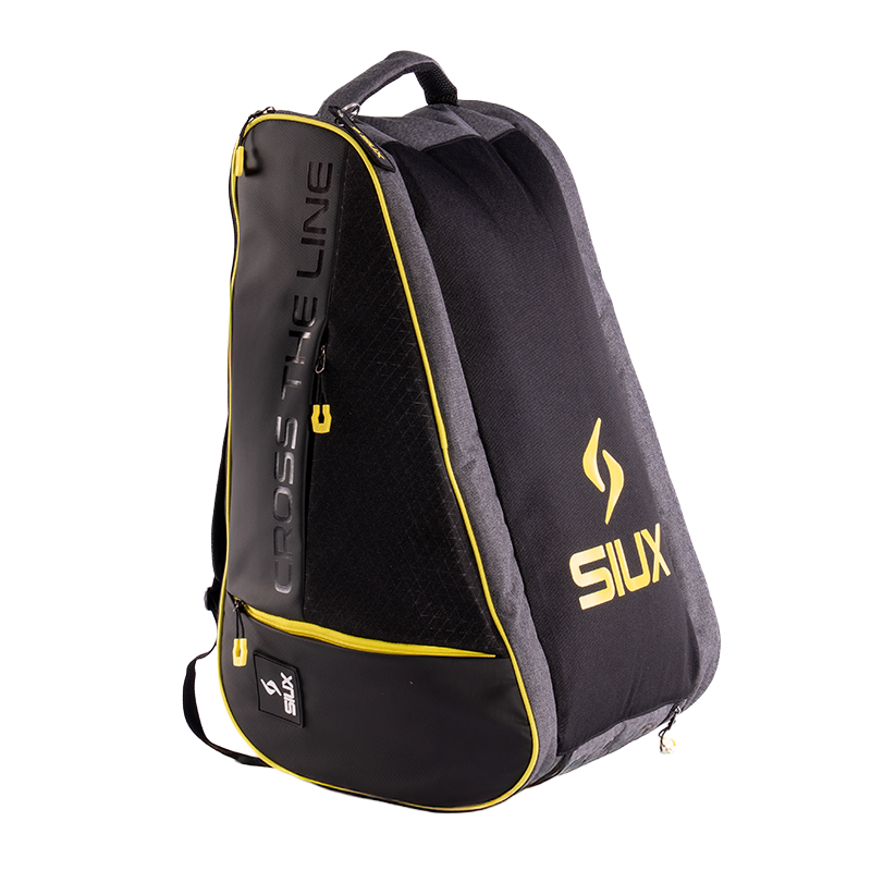 The Padel bag Siux Trail Black It represents the professional functionality of the Elite Range in a compact format. With 52 liter capacity for 2 rackets and optimized dimensions of 60 × 30 × 7 cm, this padel racket bag integrates high-performance thermal insulation that protects your equipment in any weather condition. Constructed of SPU-reinforced polyester, it incorporates a dedicated shoe compartment, front pocket and four quick-access side pockets. The distinctive keychain Siux completes a design designed for daily demands.