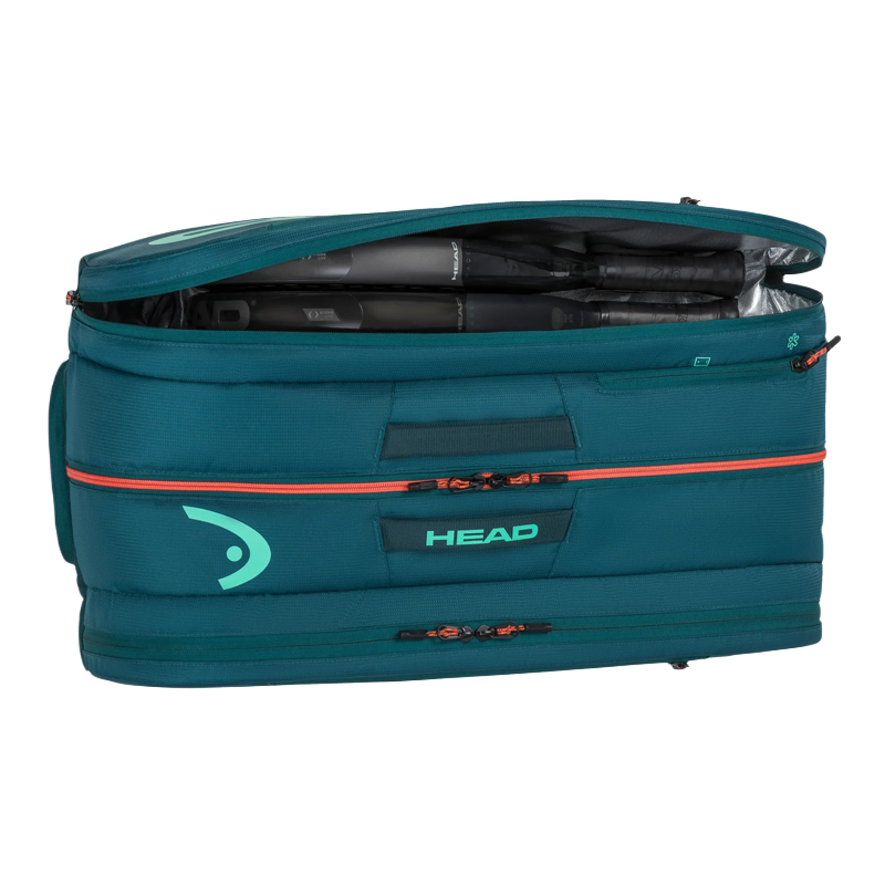 The Padel bag Head Green Tour 2026 has a capacity of 40 liters, it houses all your essential equipment for training and competitions. Its ergonomic design distributes weight evenly, allowing you to carry it comfortably for long days. Premium construction and refined finishes reflect the commitment of Head with excellence, while its sophisticated pink hue adds a distinctive touch to your sports luggage.
