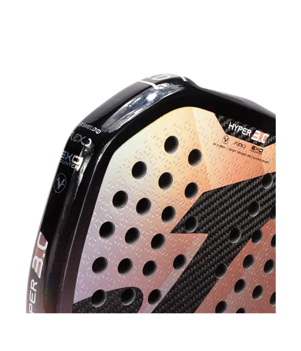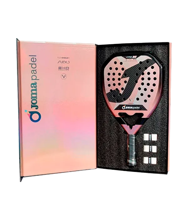The Racket Joma Hyper 3.0 by Vero Virseda Pink offers an optimal balance between precision and power, designed specifically for advanced or professional level competitors. Its hybrid configuration with medium-high balance maximizes accuracy without sacrificing exit velocity. It incorporates a high-density FLEXO Black EVA core that enhances response, while its FLEXSHIELD carbon fiber faces 3K They provide rigidity and superior performance. The 100% carbon EXO COUNTER frame guarantees longevity and structural solidity. Its VIBRA-OUT technology reduces vibrations by 40%, preventing injuries, complemented by an ergonomic octagonal handle. With an ultralight weight of 350-360 grams.