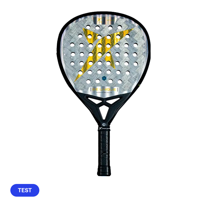 Racket Drop Shot Axion Attack 1.0 LTD, the racket by Jon Sanz, created with a teardrop-shaped mold and an EVA Pro rubber core, highlighted for its excellent feeling of control. By combining this rubber with a high ball speed, power is increased. These characteristics offer a medium-high balance, oriented towards the head of the racket.
