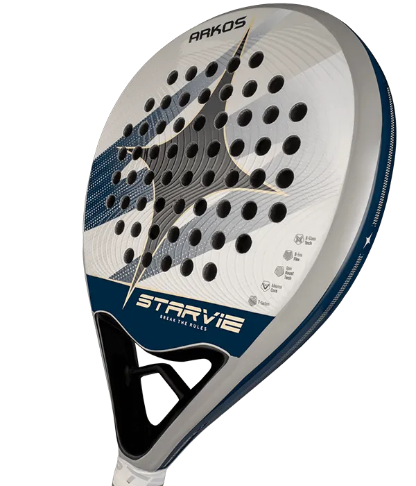 The Racket StarVie Arkos 2026 features a round shape design with low balance, ideal for players starting out in the padel and are looking for maximum control and easy handling. Its surface made of X-Glass Tech fiber offers greater elasticity, facilitating a smooth ball exit. The rubber S-Eva Flex, with soft density, provides comfort and speed with each blow. In addition, Advance Core technology improves stability and reduces vibrations, favoring a more precise and comfortable game to perfect technique from the beginning.