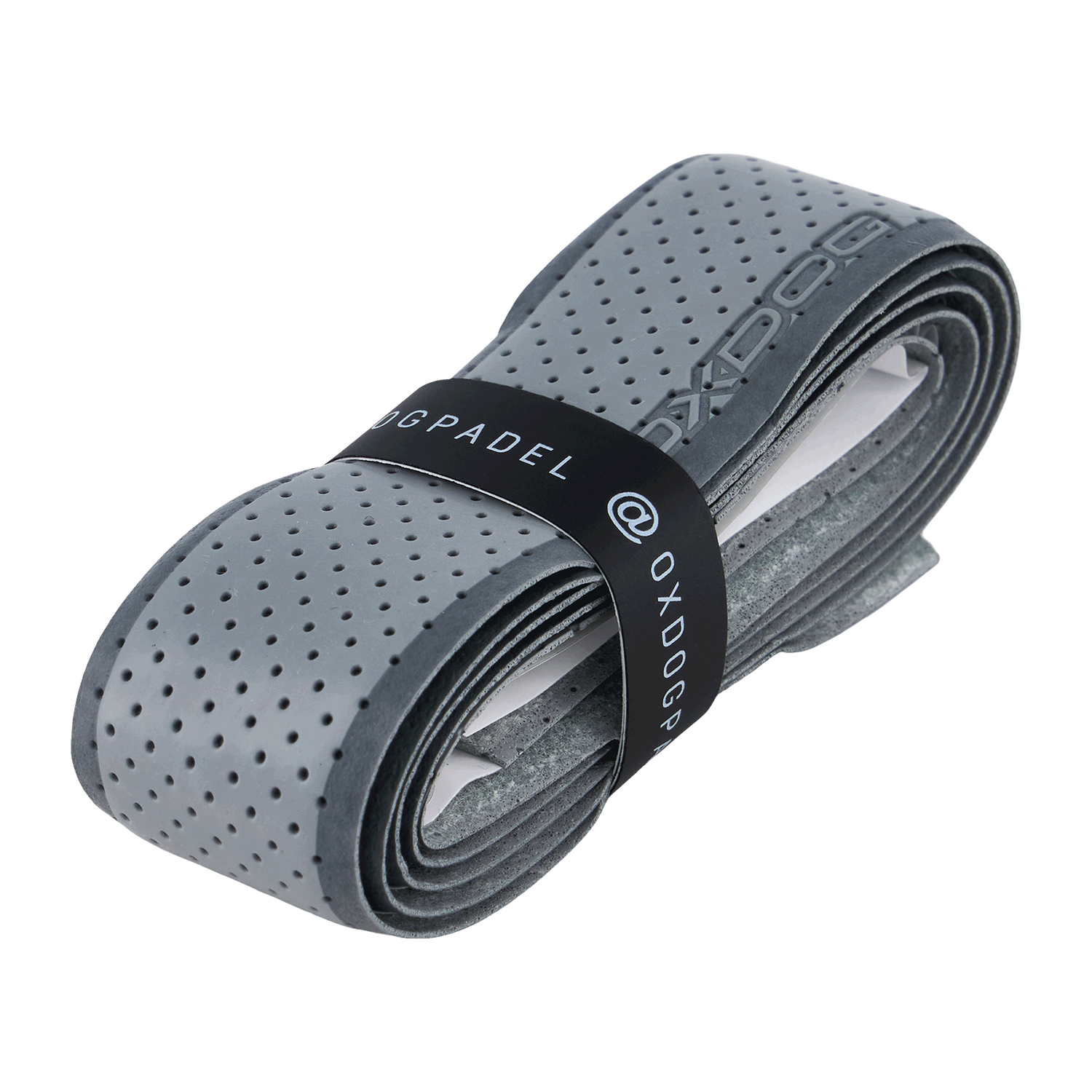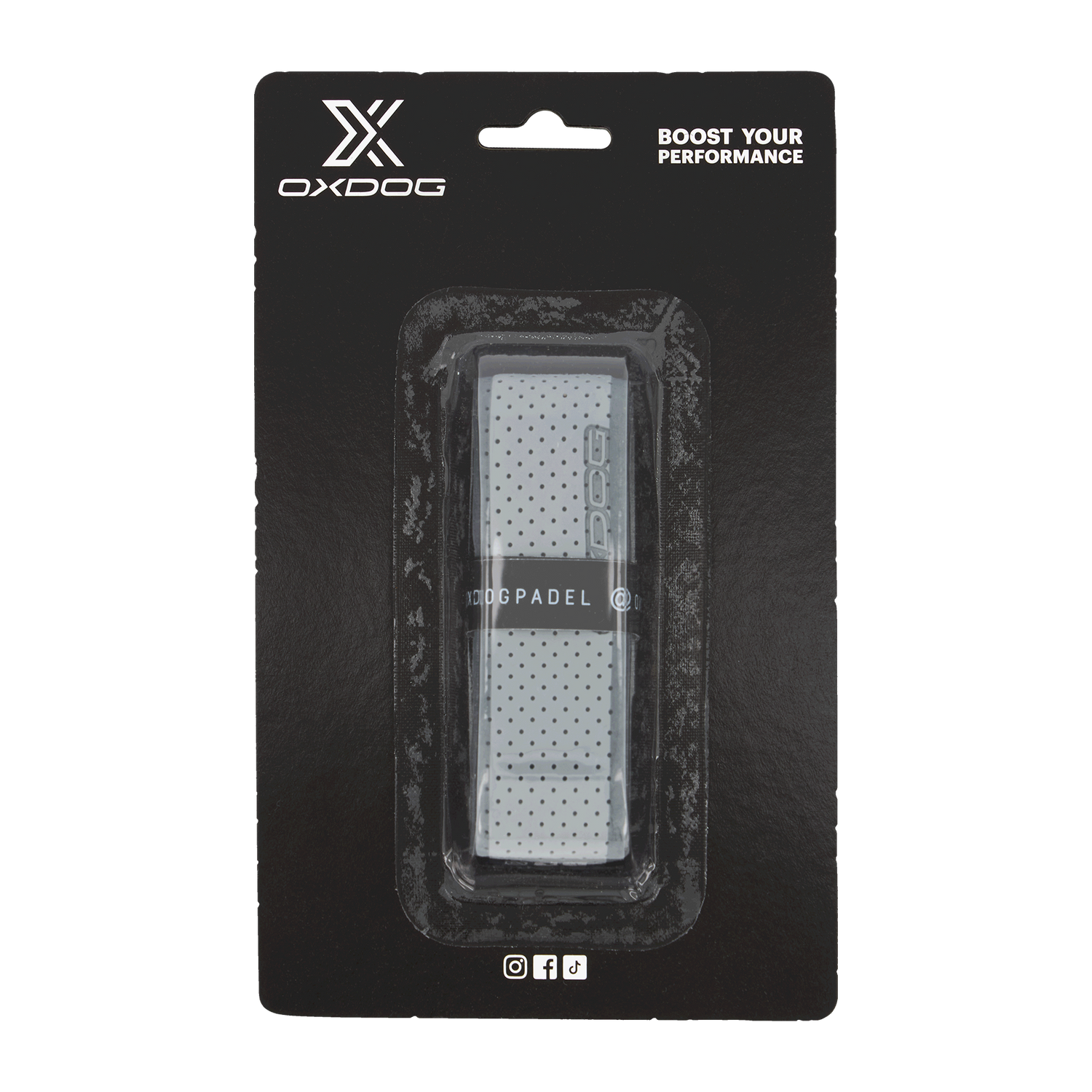 Grip base profesional. Construcción de 2 capas con una  superior de PU (goma muy adherente). Superficie grabada y perforada para un máximo agarre y absorber el sudor. 1.9mm de grosor.