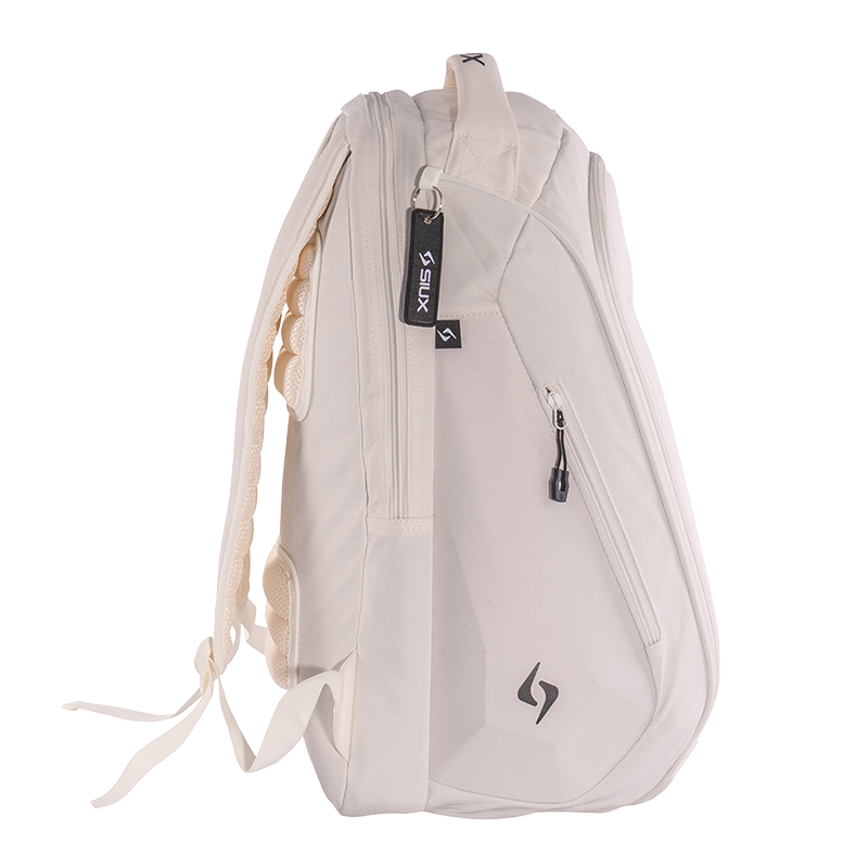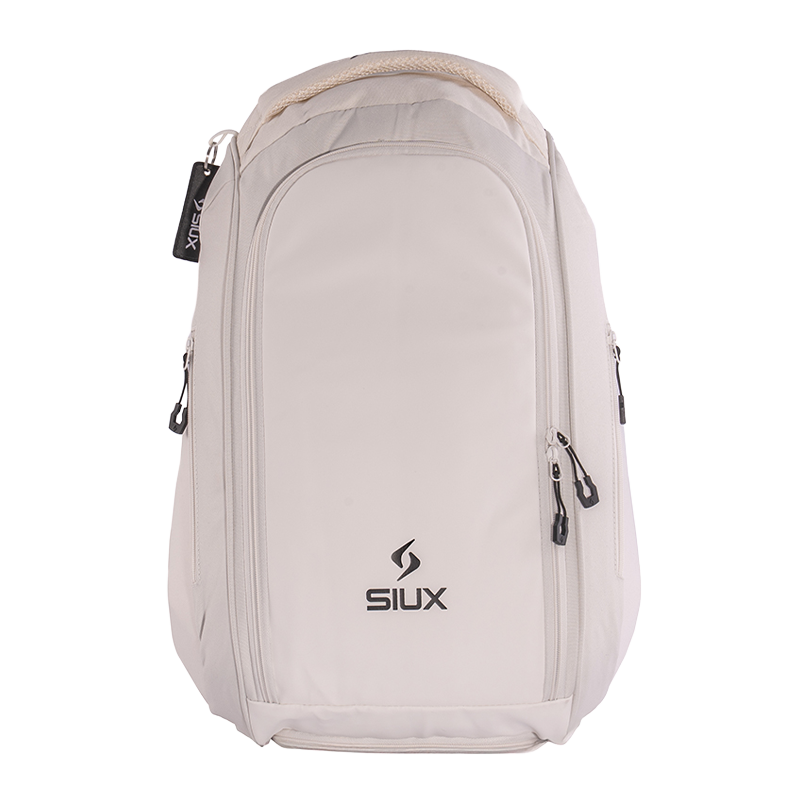 La Mochila Siux Tour Blanca representa la funcionalidad profesional de la Gama Elite en formato compacto. Con 30 litros de capacidad para 1 pala y dimensiones optimizadas de 50 × 35 × 26 cm, esta mochila está diseñada para jugadores que buscan organización sin compromisos. Construida en poliéster reforzado con neopreno, integra un bolsillo específico para portátil, compartimento dedicado para zapatillas y dos bolsillos laterales de acceso rápido. La espalda acolchada garantiza comodidad superior durante el transporte, completado con el distintivo llavero Siux.