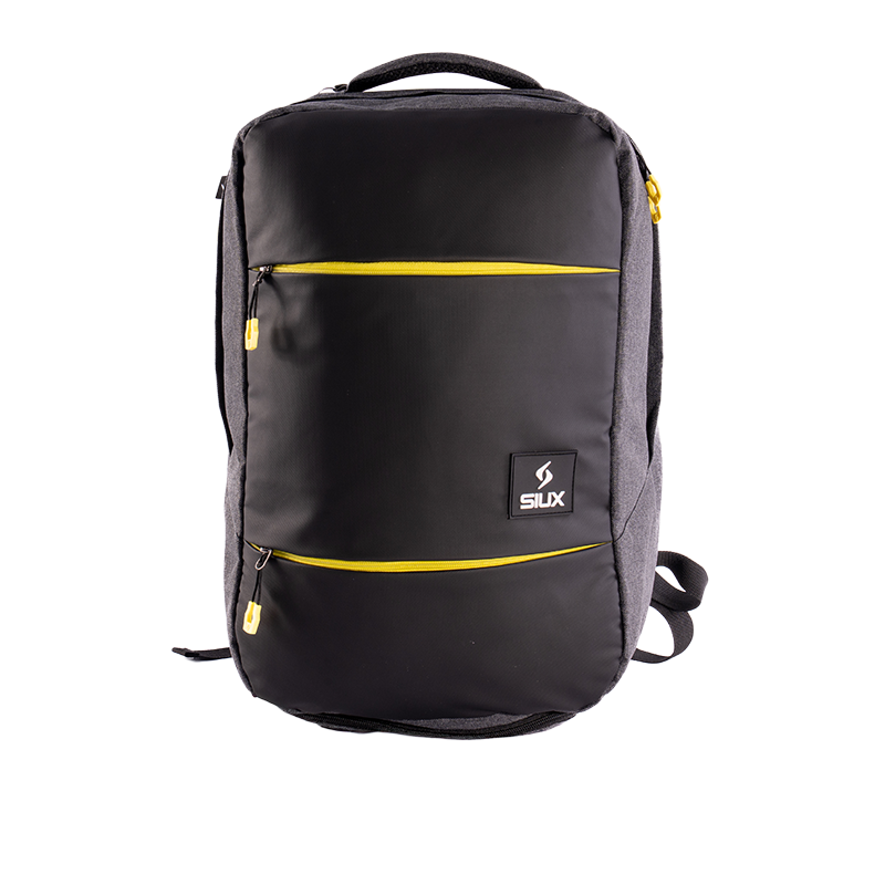 La Mochila Siux Trail Negra representa la funcionalidad profesional de la Gama Elite en formato compacto. Con 27 litros de capacidad para 2 palas y dimensiones optimizadas de 48 × 30 × 20 cm, esta mochila integra aislamiento térmico de alto rendimiento que protege tu equipamiento en cualquier condición climática. Construida en poliéster reforzado con SPU, incorpora un compartimento dedicado para zapatillas y dos bolsillos frontales de acceso rápido. El acabado negro con detalles amarillos y el distintivo llavero Siux completan un diseño pensado para la exigencia diaria.