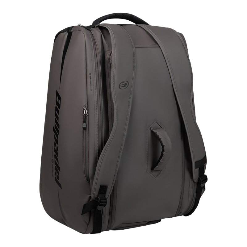 El Paletero Bullpadel Di Nenno Xplo Gris Medio es un complemento exclusivo diseñado para el jugador profesional Martín Di Nenno. Confeccionado en nylon dobby y neopreno, combina durabilidad con elegancia deportiva premium. Con medidas de 60 x 30 x 40 cm, ofrece capacidad total para tu equipamiento: un amplio compartimento central para ropa y accesorios, más dos compartimentos térmicos que protegen hasta 4 palas de cambios de temperatura.