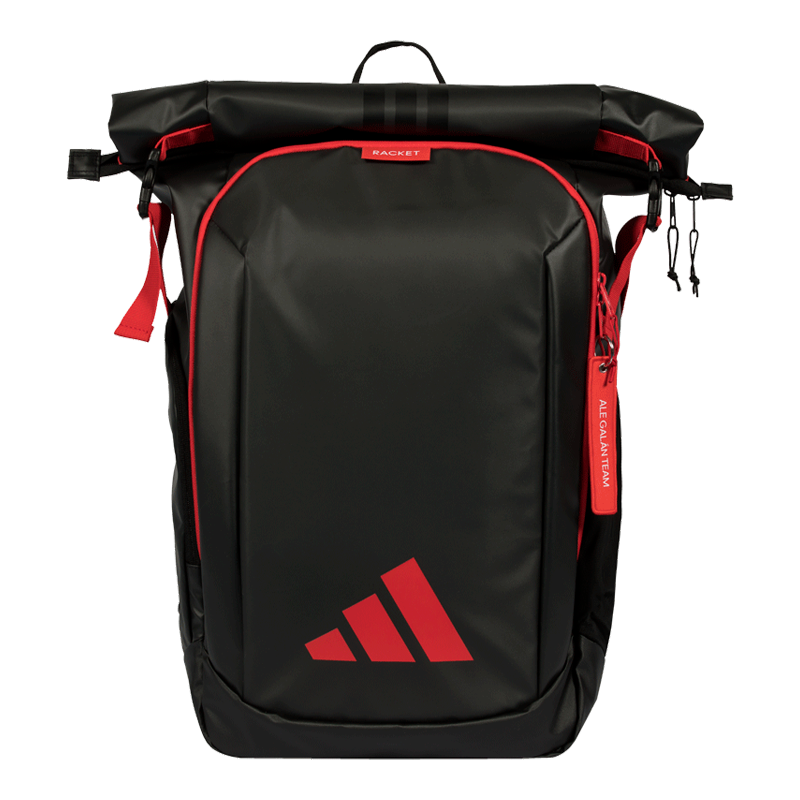 Mochila Adidas Multigame Black/Red Ale Galán 2026 con distintiva firma de Ale Galán. Diseñada para jugadores que exigen lo máximo, combina funcionalidad táctica con un toque de coleccionismo deportivo. Su arquitectura inteligente incluye compartimento frontal con cremallera para acceso inmediato, bolsillo lateral de malla elástica ideal para botellas e hidratación, bolsillo lateral con cierre seguro para objetos personales, y bolsillo trasero con apertura lateral para equipamiento o documentos. Cada detalle responde a las necesidades reales del jugador: desde entrenamientos intensos hasta desplazamientos a torneos.