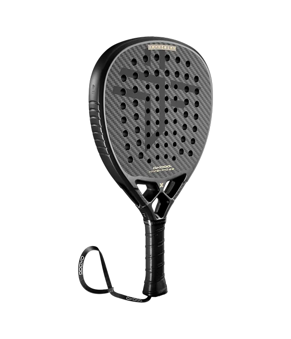 Pala Oxdog Hyper Pro 2.0, una pala con forma de lágrima, balance alto y tacto medio-duro para desatar todo tu potencial tanto en la red como en el fondo de la pista. Su diseño destaca por su elegancia gracias a la predominancia del color negro y la sutileza en los detalles del dorado.