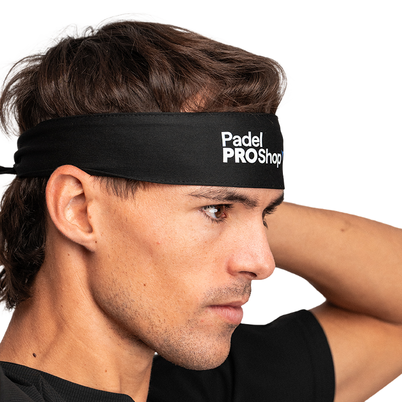 Bandana PadelPROShop en color negro  ajustable gracias a su extensión. Olvídate de molestias durante el juego con esta bandana de PadelPROShop fabricada 100% en poliéster.