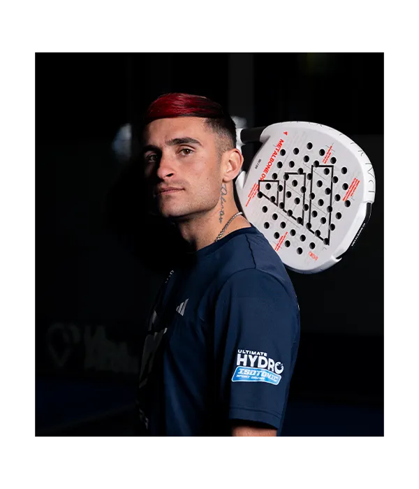 La Adidas Metalbone Delantero09 es la  pala exclusiva diseñada para Delantero09, creador de contenido y referente del pádel. Pensada para jugadores avanzados, destaca por su Octagonal Structure que aporta rigidez y precisión, combinando fibra de vidrio y goma Soft Performance para una gran salida de bola y comodidad. Incluye refuerzos estructurales para mayor resistencia, superficie con tecnología Spin Blade para mejores efectos, y un diseño de agujeros que potencia el control y el tacto. Una pala versátil y potente, ideal para quienes buscan rendimiento al máximo nivel.