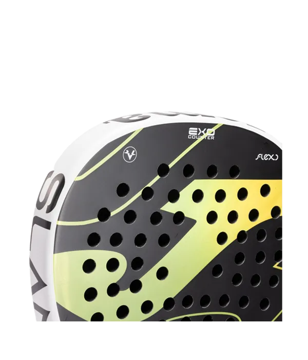 Equipada con un núcleo FLEXO BlackEVA de alta densidad y fibras FLEXSHIELD de grafito, esta pala ofrece un amplio punto dulce y optimiza la salida de bola, asegurando golpes controlados y precisos. Su marco de carbono 100% EXO COUNTER garantiza una gran durabilidad y mantiene la rigidez estructural incluso en los encuentros más intensos.