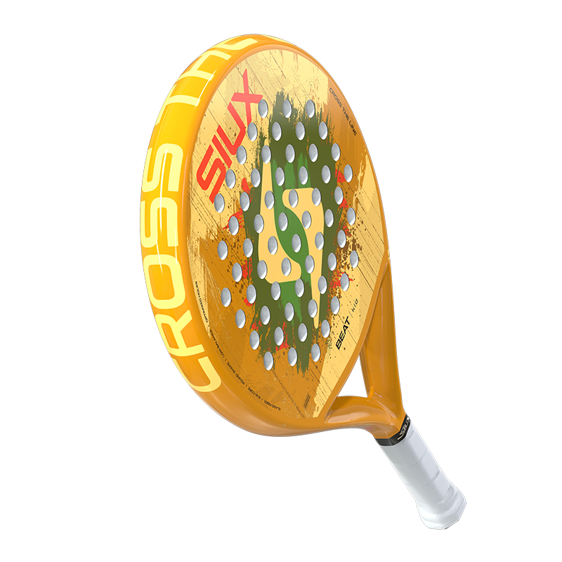 Forma redonda para control. Caras de fibra de vidrio. Núcleo EVA. Peso ligero adaptado a jugadores jóvenes. Balance bajo. Gama Junior.