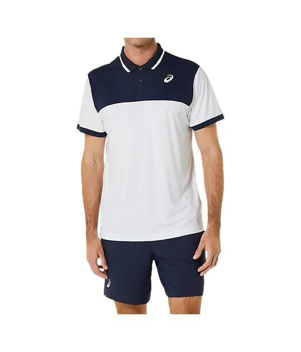 Polo Asics Court blanco y azul marino fabricado con materiales suaves que proporcionan una plena sensación de comodidad. Gracias a su diseño, tu cuerpo se mantendrá seco durante todo el juego.