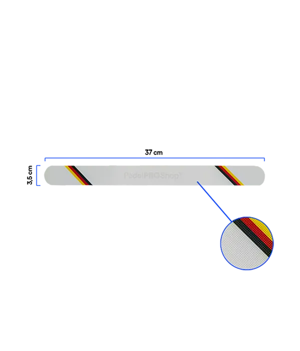 El protector PadelPROShop Transparente con la bandera de Alemania en los extremos ofrece una protección eficaz para tus palas, evitando arañazos y golpes durante el juego. Su diseño en negro con logo blanco combina estilo y funcionalidad. Gracias a su adhesivo de alta calidad, su instalación es rápida y sencilla, garantizando un ajuste perfecto sin dañar la superficie de la pala. Ideal para mantener tus palas en óptimas condiciones y prolongar su vida útil.