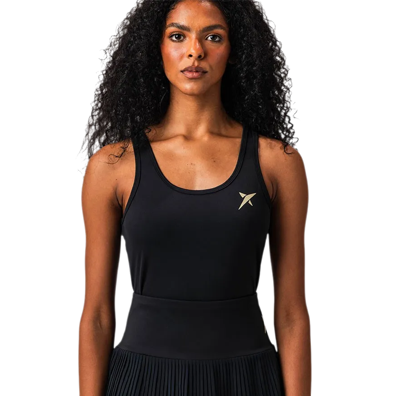 Camiseta sin mangas Noor de Drop Shot que combina sofisticación y funcionalidad. Confeccionada en tejido Nylon Elastane Interlock, ofrece una elasticidad excepcional que facilita movimientos amplios y garantiza comodidad durante el juego. Su tecnología Dry System Keepcool evacúa eficazmente el sudor, manteniéndote seco en pista. El distintivo corte mariposa en la espalda estiliza la silueta mientras aporta un toque de elegancia. Diseño en negro profundo con detalles dorados que reflejan la identidad de una marca de referencia. Resistente y duradero, este básico versátil se convierte en la pieza esencial de cualquier guardarropa de pádel.