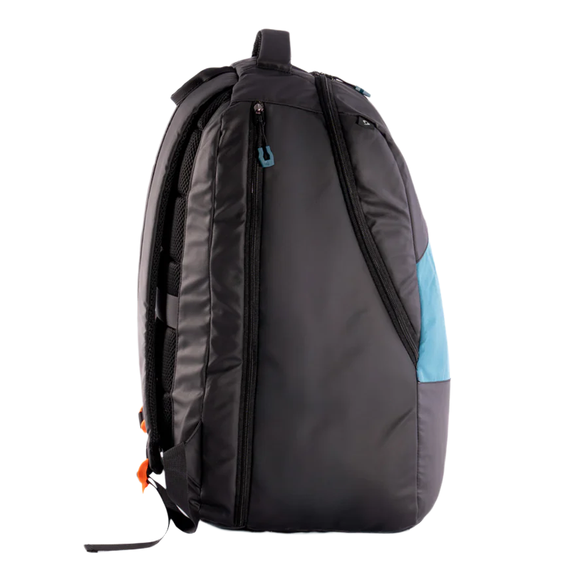 La Nomad es la maleta de la Gama Elite. Con 96 litros de capacidad para 20 palas, está diseñada para jugadores que viajan a competiciones. Incluye ruedas y tirador extensible metálico para máxima movilidad.