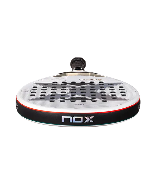 La Nox AT10 Genius 12K LTD 2025 Edición Dubai presenta una estructura revolucionaria que combina marco de fibra de carbono con núcleo de goma Multicapa MLD Black Eva. Su distribución de peso optimizada facilita un manejo superior en pista, ofreciendo el equilibrio perfecto entre potencia y precisión para satisfacer las exigencias de jugadores profesionales. La edición exclusiva del P1 de Dubai, incluye también una muñequera negra y detalles dorados, un llavero réplica de la AT10 Genius 12K, dos correas intercambiables y dos overgrips Nox.